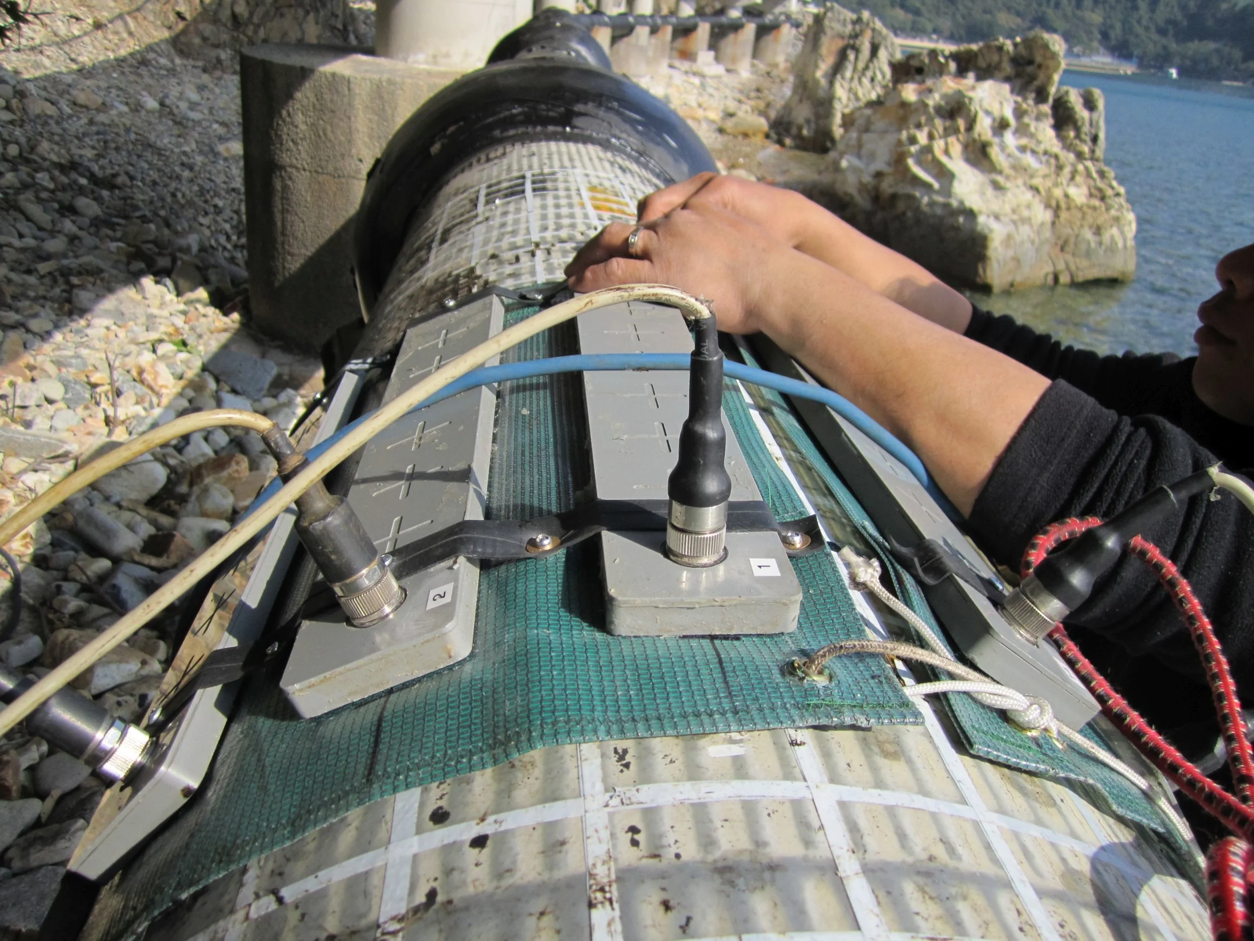 The FAST tool. Measures apparent wall thickness by firing sensors off simultaneously in a wrap around blanket.